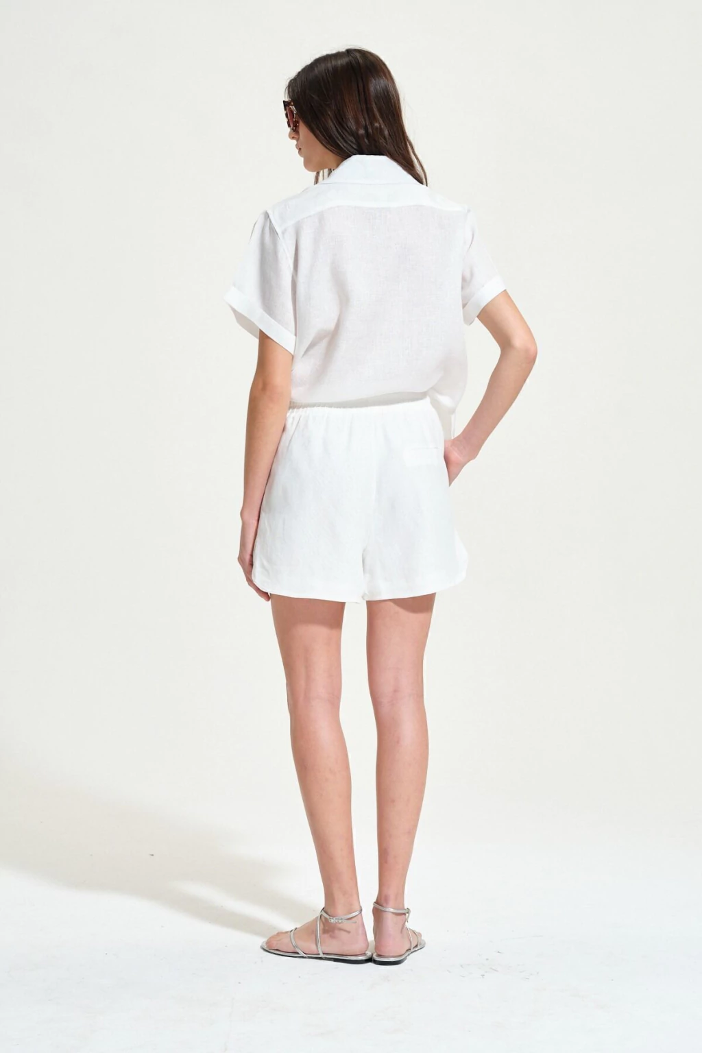 Short de lino con cintura elástica y cordon regulable. Combinala con la camisa Capri para armar el conjunto!